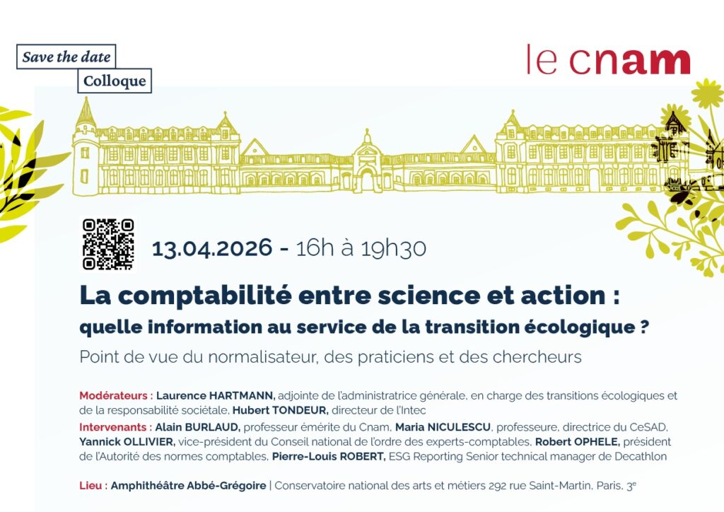 đŸŒ±La comptabilitĂ© entre science et action – Lundi 13 avril 2026 – 16h00 Ă  19h30 – Intec-Cnam